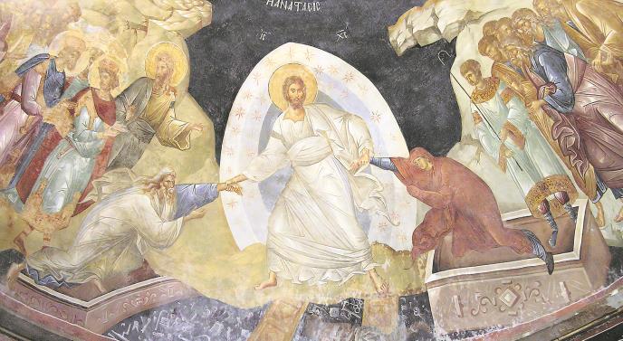 Isus je sahranjen u petak uveče, u subotu je njegovo telo počivalo u grobu, a u nedelju rano ujutru osetio se snažan zemljotres kad je anđeo Božji sleteo u vrt Josifa iz Arimateje, oborio ploču navaljenu na ulaz u grob i seo na nju. „Lice njegovo beše svetlo kao munja, a odelo belo kao sneg.“