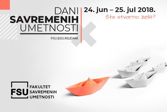 Fakultet savremenih umetnosti vam poklanja nesvakidašnji umetnički događaj ovog leta! Od 24. juna do 25. jula na tri lokacije u gradu održaće se Dani savremenih umetnosti, pod sloganom „Šta stvarno želiš?”.