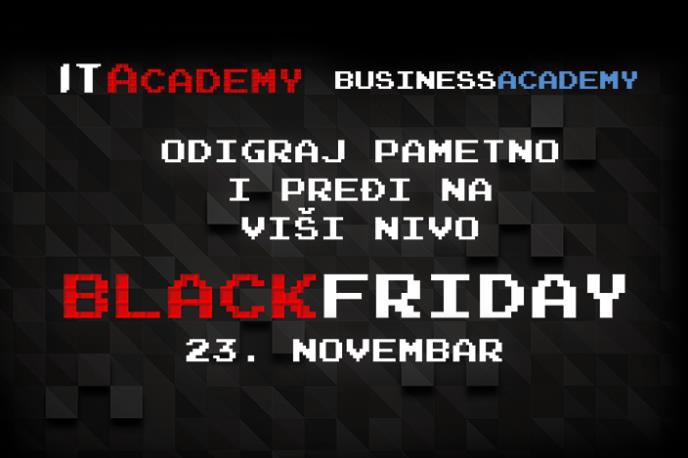 Zbog sve većeg interesovanja za stručnjake u oblasti informacionih tehnologija i biznisa, kao i sve veće potrebe za odgovarajućim obrazovanjem u ovim oblastima, ITAcademy i BusinessAcademy i ove godine organizuju specijalnu akciju od 23. novembra povodom Crnog petka (Black Friday).