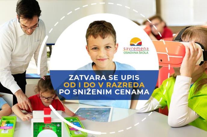 Samo do 30. juna imate priliku da po sniženim cenama svom detetu obezbedite školovanje u skladu sa svetskim standardima u Savremenoj osnovnoj školi na Novom Beogradu. Zatvara se upis učenika od I do V razreda u okviru koga su školarine niže za čak 40%.