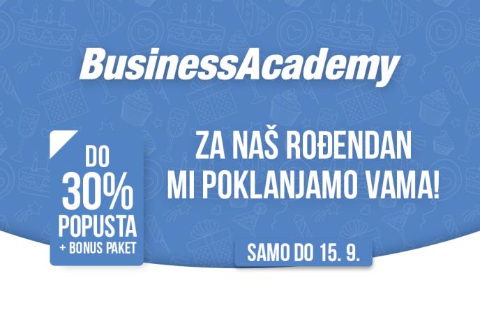 ROĐENDANSKA AKCIJA NA BUSINESSACADEMY: Do 30% popusta + BONUS paket za besplatno doživotno školovanje