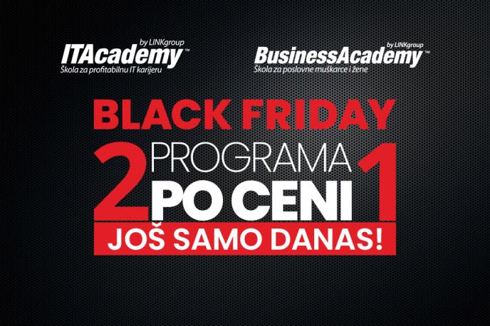 Da podsetimo, akcija Black Friday traje još danas i samo sada možete upisati dva programa na ITAcademy ili BusinessAcademy po ceni jednog. Prijavite se ako želite da se usavršite za više IT oblasti ili ste zainteresovani da započnete razvoj svojih poslovnih veština.