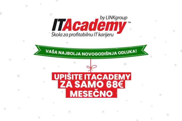 ITAcademy do 3. januara omogućava upis po najnižoj ceni tokom godine, pa jednogodišnje školovanje za neko od najplaćenijih IT zanimanja možete započeti za samo 1.199 evra ili svega 68 evra mesečno za plaćanje u ratama.