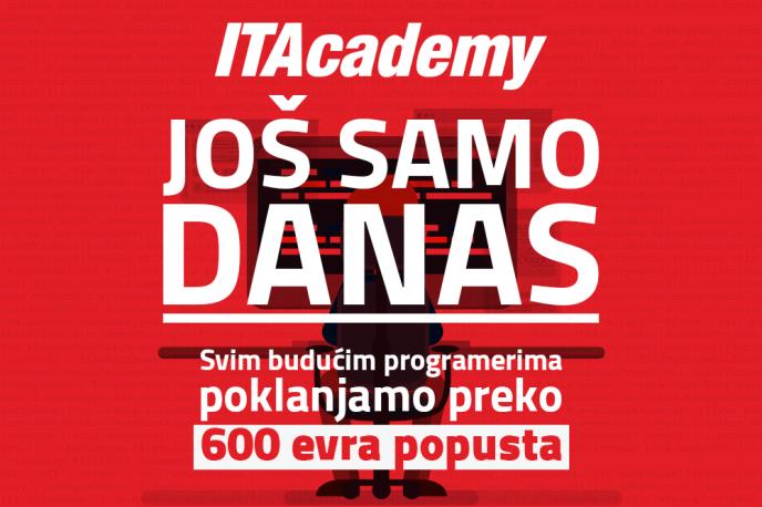 Akcija povodom Dana programera na ITAcademy traje samo još danas i omogućava vam da upišete neki od smerova na odseku Programming i Mobile Department uz popust od preko 600€.