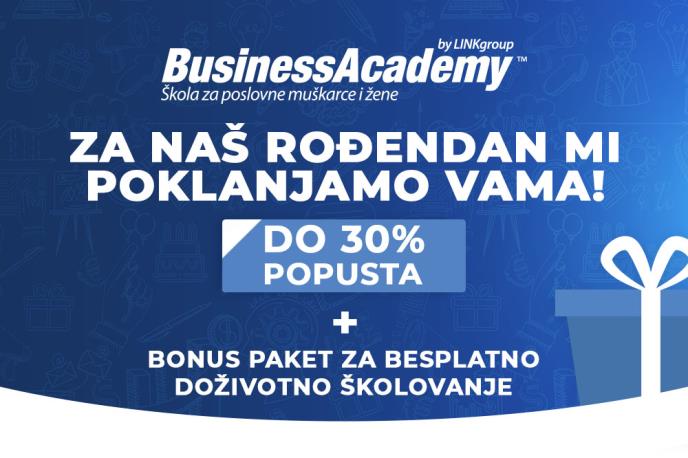 BUSINESSACADEMY POKLANJA ZA ROĐENDAN: 30% popusta plus BONUS paket celoživotnog školovanja