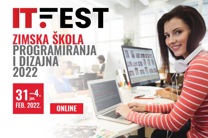 Zimska škola programiranja i dizajna – IT Fest 2022 počinje u ponedeljak, 31. januara, i trajaće do petka, 4. februara, a predavanja će biti moguće pratiti putem live stream-a. Ono što je sjajna vest za sve zainteresovane srednjoškolce koji žele da nauče korisne veštine iz oblasti programiranja i dizajna jeste da se mogu prijaviti potpuno besplatno.