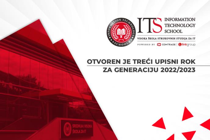 Pred sam početak nove akademske godine stižu odlične vesti za sve buduće brucoše koji se još uvek nisu upisali na fakultet: na Visokoj školi strukovnih studija za informacione tehnologije – ITS otvoren je treći upisni rok za generaciju 2022/23.
