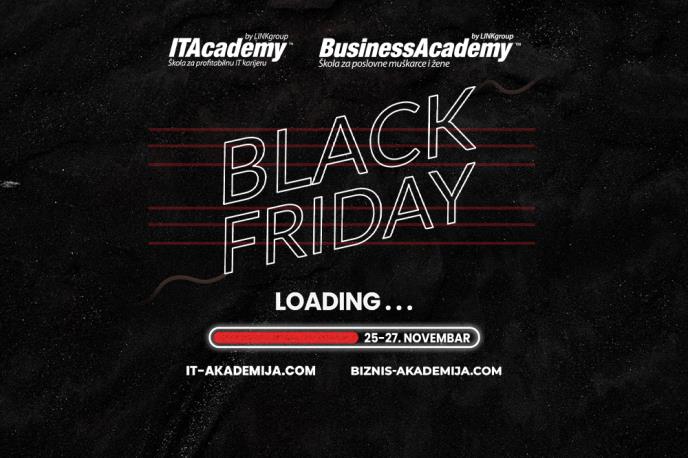 Zbog sve većeg interesovanja za stručnjake u oblasti informacionih tehnologija i biznisa, kao i zbog sve veće potrebe za odgovarajućim obrazovanjem u ovim oblastima, ITAcademy i BusinessAcademy organizuju specijalnu akciju povodom Crnog petka (Black Friday), koja ove godine traje od 25. do 27. novembra.