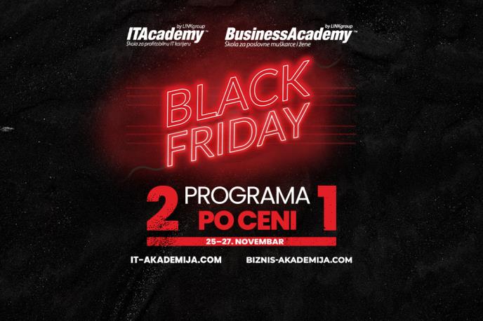 Kako bi izašle u susret svim ljudima koji žele da promene svoju karijeru i život i opremile ih znanjima koja će im to i omogućiti, ITAcademy i BusinessAcademy su pokrenule jedinstvenu akciju povodom događaja Black Friday (Crni petak), koji je širom sveta poznat po velikim sniženjima i rasprodajama.