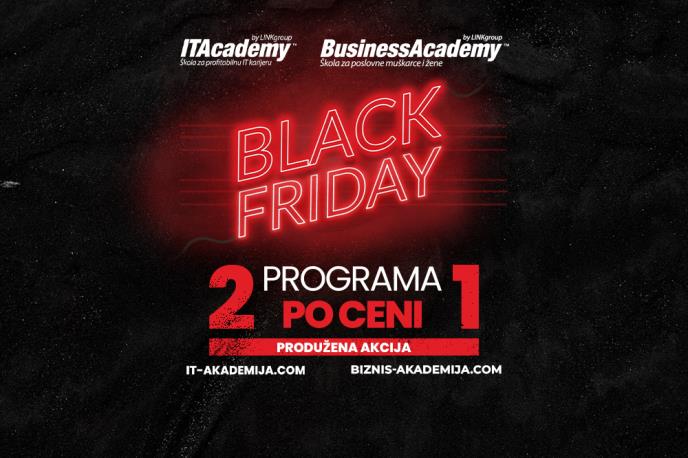 Zbog ogromnog interesovanja velika Black Friday akcija koju su organizovale ITAcademy i BusinessAcademy produžena je do kraja dana!
