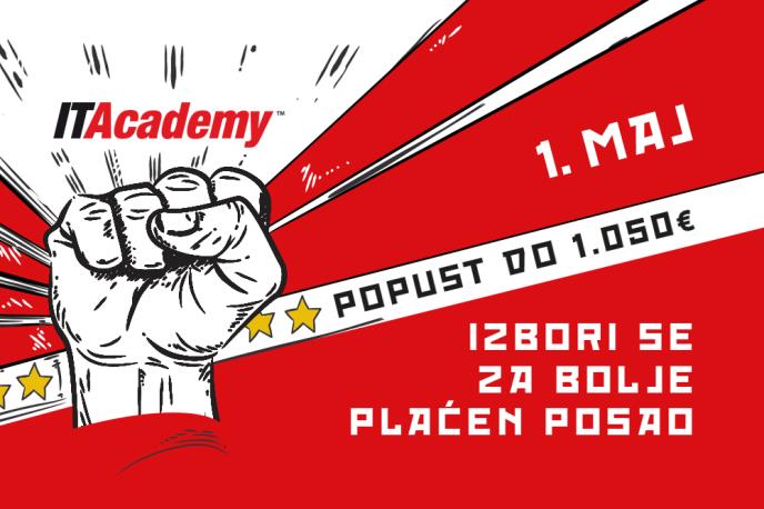Velika prvomajska akcija na ITAcademy traje od 25. aprila do 2. maja i omogućava vam upis uz 1.050 evra popusta na jednogodišnje, najsavremenije IT školovanje. Na vama je samo da od šest oblasti (programiranje, dizajn i multimedija, administracija, IT poslovanje, 3D dizajn i CAD i razvoj mobilnih aplikacija) izaberete onu koja najviše odgovara vašim interesovanjima.