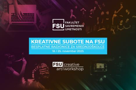 Tradicionalna manifestacija FSU Creative Art Workshop održava se u prostorijama Fakulteta savremenih umetnosti (Svetozara Miletića 12, Beograd) i osmišljena je kao mesto na kome se okupljaju kreativci zajedničkih interesovanja i talenata. Nakon završetka svaki učesnik dobija sertifikat za učešće na radionicama.