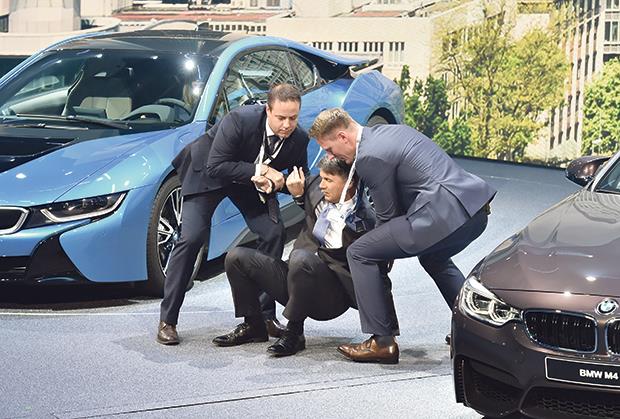 Padanje u nesvest novog direktora kompanije BMW Haralda Krigera (Harald Krüger) tokom konferencije za novinare na sajmu automobila u Frankfurtu privuklo je više medijske pažnje nego predstavljanje „Poršeovog“ (Porsche) potpuno električnog modela „mišen i“ (Mission E) ili „Audijevog“ „i8“.