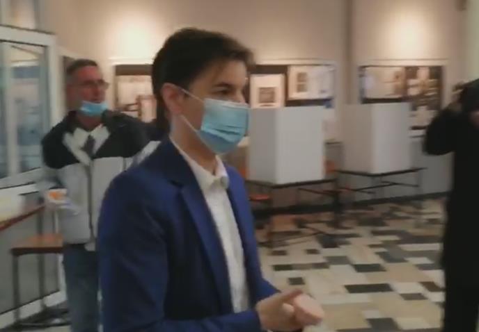 Premijerka je, u skladu sa okolinostima u vezi sa korona, pod kojima se ovi izbori održavaju, na biračkom mesto ušla sa zaštitnom maskom.