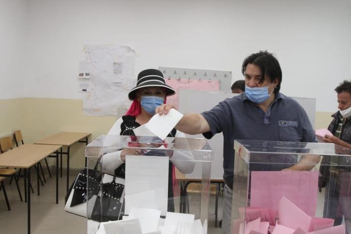 Pevačica je glasala prva, a harmonikaš pratio ju je u stopu, te glasao odmah za njom. Par je sve vreme nosio zaštitne maske na licu.