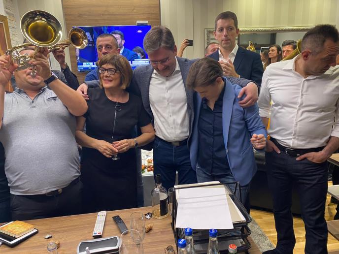 Sinoć je u štabu naprednjaka bilo baš veselo, a ubedljiva pobeda slavila se uz trubače i šampanjac.