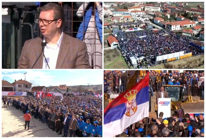 Predsednik Srbije Aleksandar Vučić počeo je danas kampanju SNS-a za predstojeće parlamentarne izbore, raspisane za 3. april, skupom u Merošini na stadionu Fudbalskog kluba “Rad”, a dočekalo ga je oko 15.000 građana.