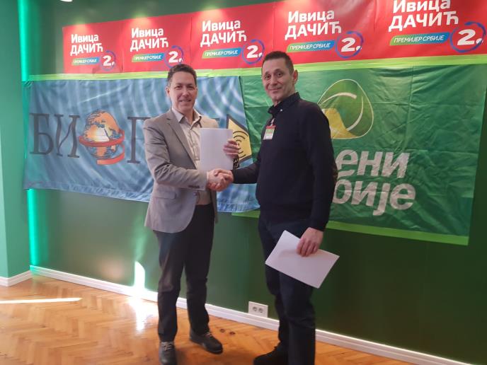 Predsednik Zelenih Srbije, Ivan Karić se zahvalio udruženju „Biogen" na podršci, pozvao druge organizacije i borce za zdravu životnu sredinu, da nam se pridruže Zelenima Srbije i podrže listu „IVICA DAČIĆ - PREMIJER SRBIJE", kako bismo zajedno unapredili i ozelenili našu Srbiju.