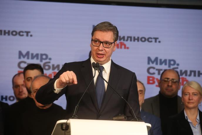 Predsednik Srbije Aleksandar Vučić odgovarao je večeras na pitanja novinara nakon obraćanja u štabu SNS.