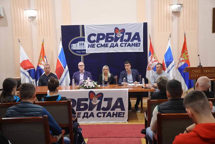 Proslavljeni srpski sportisti Vesna Čitaković Đurišić, Dejan Tomašević i Marko Кešelj poručili su na tribini u Užicu da kao profesionalni sportisti, imaju želju da "ovu utakmicu pobede zajedno sa vama i sa listom „ALEКSANDAR VUČIĆ – Srbija ne sme da stane“.