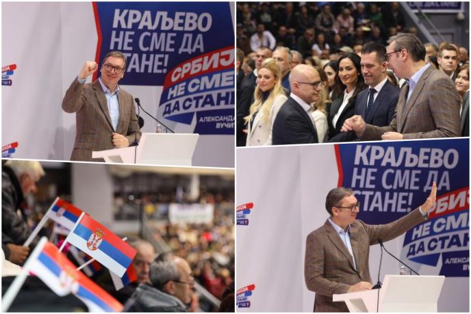 GROMOGLASNE OVACIJE ZA VUČIĆA U KRALJEVU: Izbori nisu igra, razmislite ko čuva Srbiju! Idemo da ih POČISTIMO 17. decembra