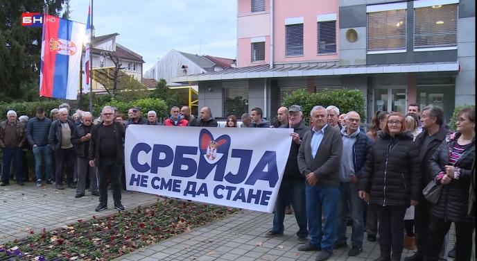 Bili su istaknuti natpisi "Srpska uz Vučića" i "Srbija ne sme da stane".