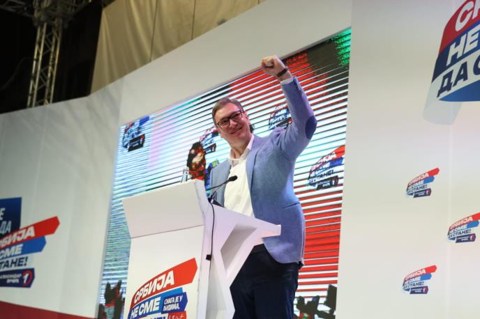 Predsednik Srbije Aleksandar Vučić objavio je na Instagramu video sa današnjeg predizbornog skupa održanog u Vranju.