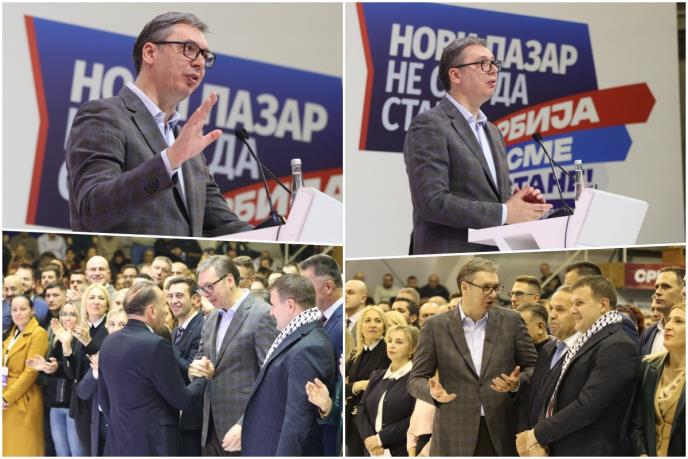 - Doći će vam oni koji ne znaju šta bi sa državom, ali ono što znam da bi je temeljno opljačkali i razorili. Vas molim za odgovornost, izbori nisu igra, to nije pitanje lepe ili manje lepe reči, već odgovornosti za vašu i budućnost vaše dece. Zato vas molim da ih i ovde u Pazaru pobedimo ubedljivije nego ikad. Hvala na veličanstvenom dočeku, da ih pobedimo, dagradimo i radimo zajedno i ubedljivije nego ikada! Za Pazar! Za Srbiju! Srbija i Pazar ne smeju da stanu! - naglasio je Aleksandar Vučić.