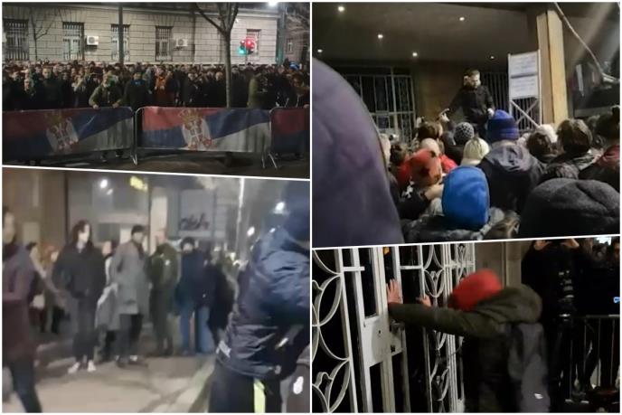 "SRBIJA PROTIV NASILJA" DEMONSTRIRA NASILJE Tresli ogradu, tukli se i šutirali, hteli na silu da provale vrata RIK-a (VIDEO)