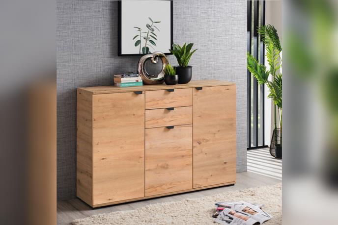 Osim što su praktične, ove komode i estetski osvežavaju ambijent, a s obzirom na to da ih ima u više modela i vrsta, mogu se prilagoditi različitim stilovima. Ukoliko birate uređenje u industrijskom stilu, komoda DUERO 3K2F u drvo dekoru biće pravi izbor. Za odlaganje brojnih stvari dovoljne su dve fioke i osam polica, a izražena tekstura artisan hrasta i crni metal savršeno se uklapaju u industrijski stil. Još jači efekat ovog stila ostvarićete postizanjem kontrasta koji možete izazvati postavljanjem komode ispred sivog zida. Gornju policu komode možete iskoristiti za dekoraciju i izlaganje omiljenih dekorativnih sitnica, knjiga ili cveća, a mesto na zidu iznad komode idealno je za ogledalo ili umetničku sliku.