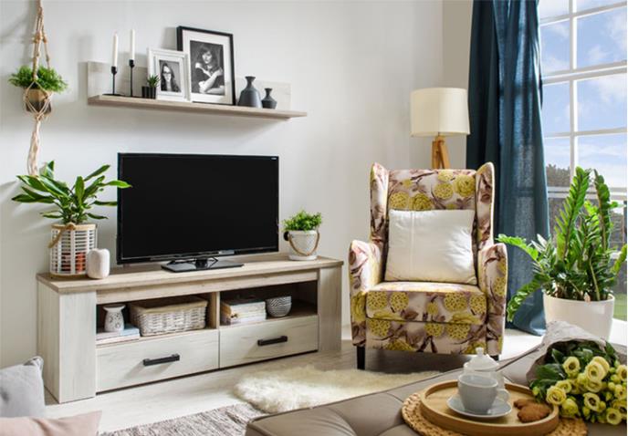 Ako ipak želite da zid bude jednobojan, a da patern unesete preko manjih površina, dizajneri enterijera Forma Ideale ističu da su različiti komadi nameštaja odlična ideja za to. Baš takva je fotelja ZURICH u floralnom printu koja ostvaruje fenomenalan ambijent sa nameštajem iz kolekcije KENT. Beli hrast KENTA i osnovna boja fotelje ZURICH se savršeno podudaraju, što omogućuje uvođenje još jedne boje, preko dela zida, koja se poklapa sa motivima paterna.