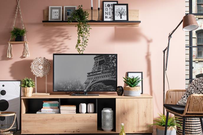 Jedan od najčešćih problema, prilikom uređivanja TV kutka jeste postavljanje velikog, crnog ekrana na sredinu najbolje tačke u prostoriji, ali uz stručne savete i ovo se može rešiti. Predlog dizajnera enterijera Forma Ideale je da televizor postavite na već pomenutu TV policu CORDOBA, u svetlom i toplom drvo dekoru, okružite je slikama, fotografijama i zidnim policama, poput zidne police LAZIO ZP i tako napravite galerijski zid koji će biti spoj lepog i korisnog.