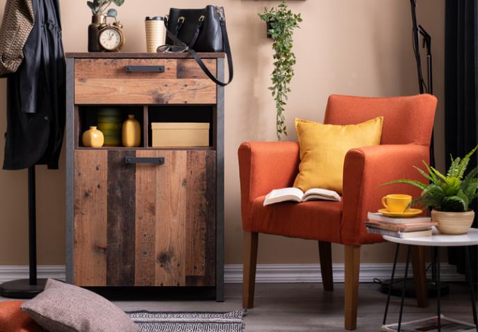 Ako ove jeseni poželite da transformišete svoj dom najnovijim dizajnerskim trendovima, ali ne želite da previše menjate izgled prostorije, probajte sa manjim komadima nameštaja. Za savršeni jesenji ambijent najbolje je da birate drveni nameštaj i predmete u zemljanim tonovima, a za toplinu i ušuškanost je najbolja žuta, kao dekoracija, ili možda čak i boja zidova. Kreiranje samo vašeg kutka, poput mesta za čitanje, doprineće vašoj radosti i miru. Idealni komadi za takav kutak su fotelja G01 u narandžastoj boji, uz koju bi se odlično uklopio cipelar CLIF CLFD211 u teksturi drveta, a neizostavan je i klub sto BJ-9852, na koji možete odložiti knjigu koju čitate ili postaviti dodatnu dekoraciju.