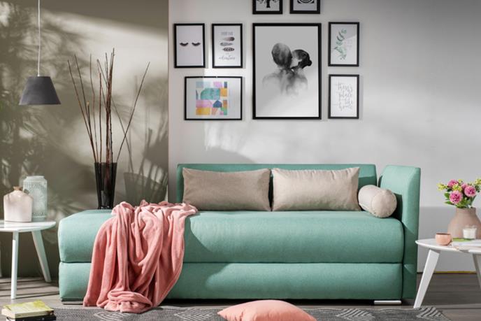 Oblik sofe je takođe veoma važan, pa je savet dizajnera enterijera Forma Ideale da se odlučite za niži model ako soba ima nizak plafon ili prozor. Možete biti smeli pri odabiru nijanse, a sjajan izbor su pastelne, tirkizna, roze ili žuta. Ležaj ALTELLA u zelenom štofu predstavlja pravo osveženje za prostor, a i praktičan je, jer poseduje i kutiju za odlaganje posteljine.