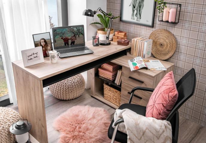 Savet je da odaberete sto u obliku slova L, umesto standardnog pravog stola, jer se školarac na ovaj način neće osećati ograničeno zidovima. Takođe, biće dovoljno prostora za skladištenje školskog pribora i knjiga. Sjajan primer ovakvog stola je kompjuter sto ARHIMED, u kombinaciji dekora sivog hrasta i crnog drveta, koji se sastoji od radne površine stola i podesivog elementa koji se može montirati pod uglom od 90 i 180 stepeni i idealan je za odlaganje knjiga, pribora i ostalih sitnica, jer poseduje tri praktične fioke i otvoreni deo sa policom.
