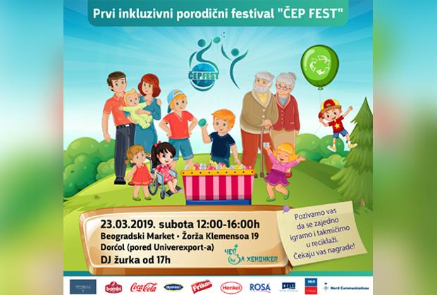 Udruženje Čep za hendikep i desetine nacionalnih organizacija osoba sa invaliditetom, u saradnji sa Beogradskim marketom i brojnim kompanijama, instutucijama, ambasadama i pojedincima koji su tokom prethodnih sedam godina doprineli uspešnoj realizaciji filantropsko ekološke inicijative Čep za hendkep, u subotu, 23. marta, organizuje Prvi Čep FEST - Inkluzivni ekološki festival za celu porodicu.