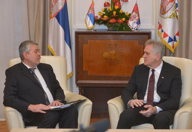 BEOGRAD - Predsednik Srbije Tomislav Nikolić primio je danas u oproštajnu posetu ambasadore Ukrajine i Australije, Viktora Nedopasa i Helenu Studert.