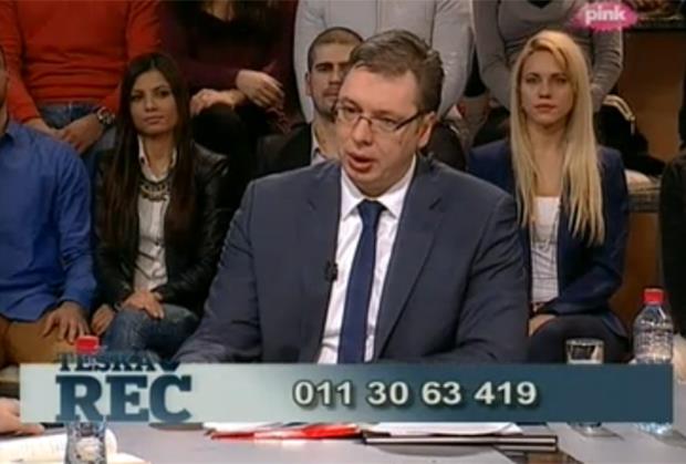 Prvi potpredsednik Vlade Srbije Aleksandar Vučić večeras u 21.05 u emisiji Teška reč na TV Pink govori kojim putem će ići Srbija, a prvi put gledaoci su mogli uživo da postave pitanje vicepremijeru Srbije i lideru SNS.