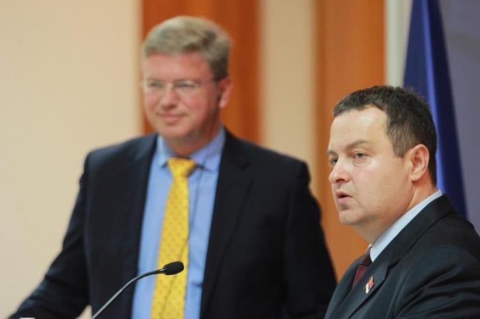 Dačić je istakao da ga raduje što su visoka predstavnica EU Ketrin Ešton i File posetili Srbiju odmah posle formiranja vlade, ističući da je sačekao Filea, koji je stigao prošle noći i sa njim već razgovarao o regionalnim pitanjima i perspektivi pregovora.