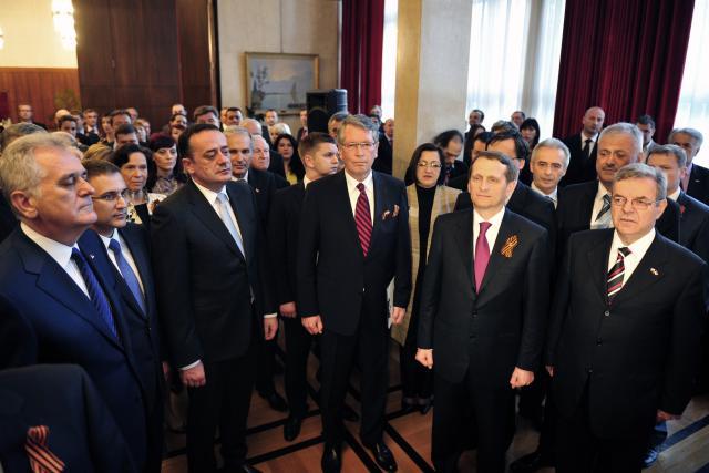 Prijemu su prisustvovali predsednik Srbije Tomislav Nikolić, predsednik ruske Državne dume Sergej Nariškin, članovi Vlade Srbije, među kojima ministri unutrašnjih poslova, energetike, odbrane i finansija - Nebojša Stefanović, Aleksandar Antić, Bratislav Gašić i Lazar Krstić, poslanici ruske Dume i Skupštine Srbije.