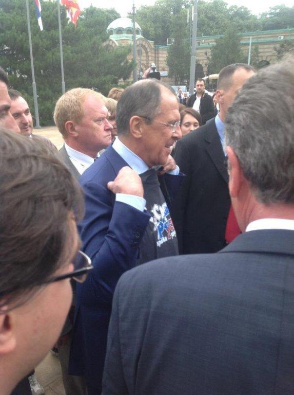 (FOTO) IZNENADILI GA: Lavrov od Beograđana dobio majicu sa natpisom Srbija i Rusija su braća zauvek!