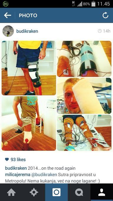 Kako bi se što pre i što uspešnije oporavio, Jovanović je operisano koleno "bandažirao" raznim spravicama o čemu svedoči i serija fotografija objavljenih na njegovom Instagram profilu
