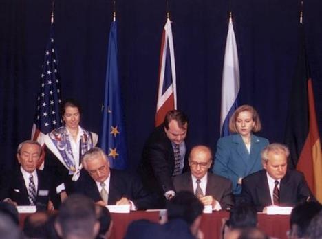 Sporazum je parafiran u prisustvu tadašnjeg državnog sekretara SAD Vorena Kristofera, pored njega glavni američki posrednici su bili Ričard Holbruk i general Vesli Klark.