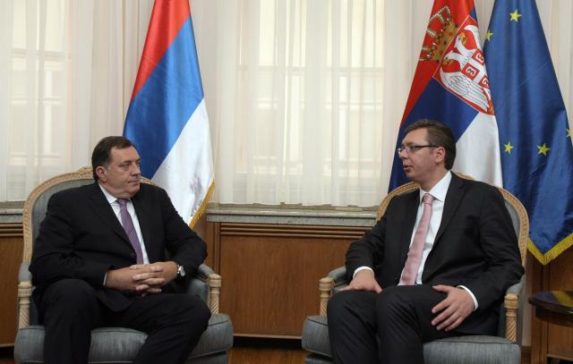 Kako se navodi u saopštenju pres službe Vlade Srbije, Vučić i Dodik su, na sastanku u Beogradu, razmenili stavove o političkoj i ekonomskoj situaciji u regionu i saglasili še da su mir, politička tolerancija i trpeljivost, kao i puna stabilnost, uslovi za napredak Republike Srbije i Republike Srpske.