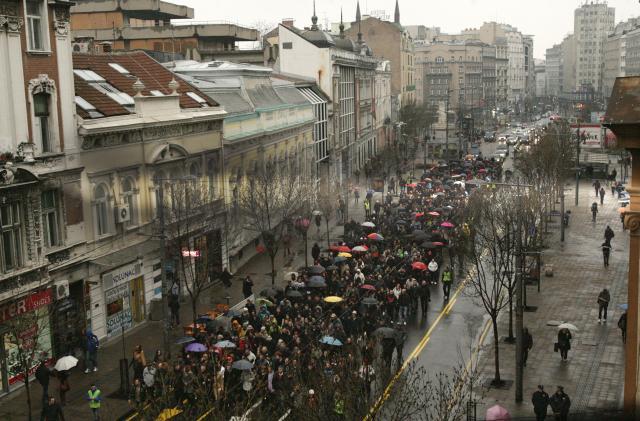 Jovanovićeva kolona je uz kišobrane, crvene i bele ruže krenula iz Simine ulice, gde je sedište LDP ka zgradi Vlade gde je 12. marta 2003. godine u atentatu ubijen Đinđić, a povorka će se završiti kraj njegovog groba u Aleji zaslužnih građana na Novom groblju. Na čelu kolone je lider LDP Čedomir Jovanović, a pored čelnika LDP među okupljenima su reditelj Puriša Đorđević, književnik Dragan Velikić, predstavnici Asocijacija slobodnih i nezavisnih sindikata.