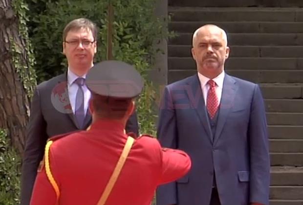 TIRANA - Premijer Srbije Aleksandar Vučić danas je doputovao u prvu zvaničnu posetu Albaniji gde ga je u Tirani uz gardu i himnu svečano dočekao albanski premijer Edi Rama.