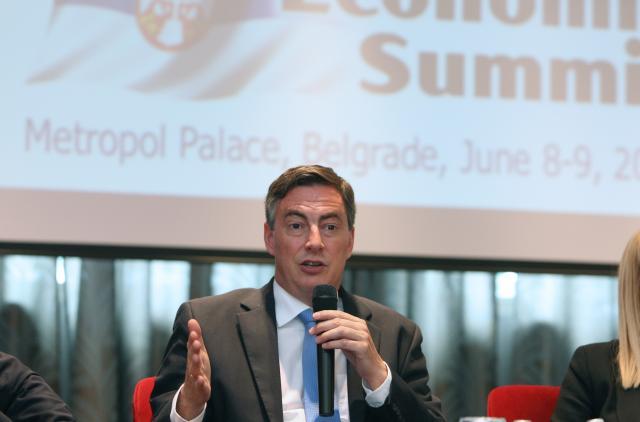"Srbija je na dobrom putu ka EU, a od nje zavisi koliko će joj vremena biti potrebno za taj proces" rekao je on na 15. Ekonomskom samitu Srbije, gde je glavna tema ekonomski oporavak Srbije. Mekalister je istakao da su najznačajniji izazovi Srbije na putu kao EU privreda, vladavina prava, regionalna saradnja i Kosovo.