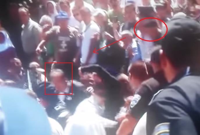 Ovaj snimak jasno pokazuje koliko je organizacija komemoracije zatajila. Naime, obezbedjenje nije bilo sposobno da Vučića odbrani od muslimanskih napadača.