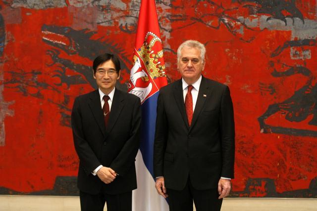 BEOGRAD - Predsednik Srbije Tomislav Nikolić primio je danas akreditivna pisma novoimenovanog ambasadora Japana u Beogradu Đuičhija Takahare kome je preneo da Srbija želi da nastavi da jača svestrane odnose i saradnju sa Japanom kao prijateljskom zemljom i jednim od najznačajnijih partnera u Aziji.