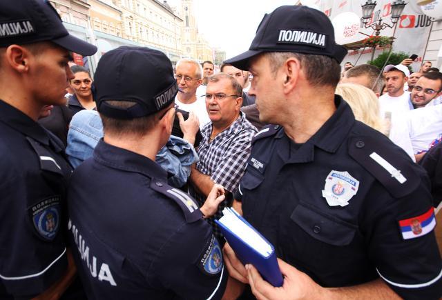 (FOTO) GUŽVA U CENTRU NS: Aktivisti SNS sprečili DS da održi konferenciju? Foto: TANJUG JAROSLAV PAP